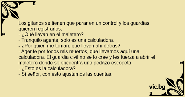 - Agente por todos mis muertos, que llevamos aquí una calculadora. El guardia civil no se lo cree y les fuerza a abrir el maletero donde se encuentra una pedazo escopeta.