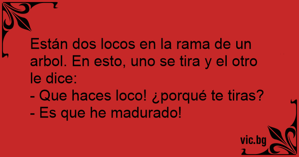 Están dos locos en la rama de un arbol. En esto, uno se tira y el otro le dice: