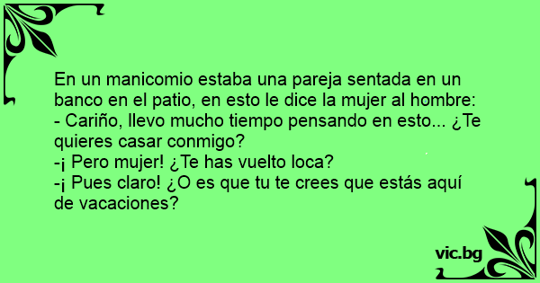 En un manicomio estaba una pareja sentada en un banco en el patio, en esto le dice la mujer al hombre: