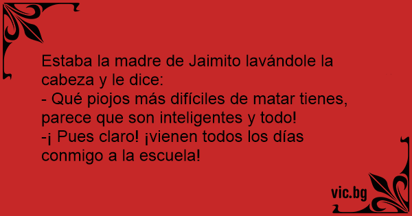 Estaba la madre de Jaimito lavándole la cabeza y le dice: