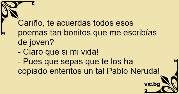 - Pues que sepas que te los ha copiado enteritos un tal Pablo Neruda!