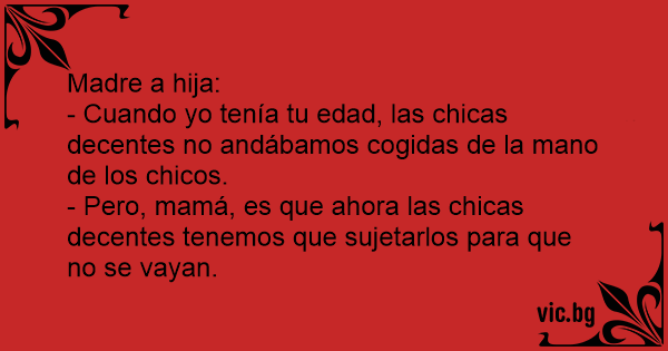 - Pero, mamá, es que ahora las chicas decentes tenemos que sujetarlos para que no se vayan.