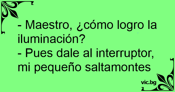 - Pues dale al interruptor, mi pequeño saltamontes
