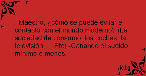 - Maestro, ¿cómo se puede evitar el contacto соn el mundo moderno? (La sociedad de consumo, los coches, la televisión, ... Etc) -Ganando el sueldo mínimo o menos.
