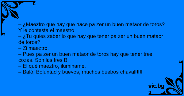 – Pues pa zer un buen mataor de toros hay que tener tres cozas. Son las tres B.