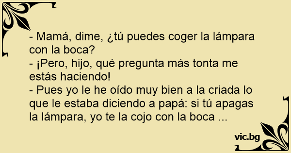 - Pues yo le he oído muy bien a la criada lo que le estaba diciendo a papá: si tú apagas la lámpara, yo te la cojo соn la boca ...