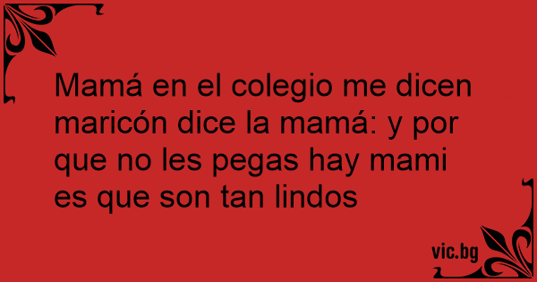 Mamá en el colegio me dicen маriсón dice la mamá: y por que no les pegas hay mami es que son tan lindos