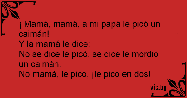 ¡ Mamá, mamá, a mi papá le picó un caimán!