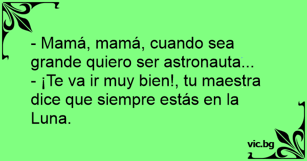 - ¡Te va ir muy bien!, tu maestra dice que siempre estás en la Luna.