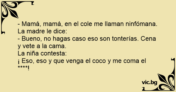 - Mamá, mamá, en el cole me llaman ninfómana.