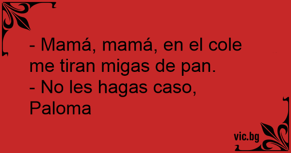 - Mamá, mamá, en el cole me tiran migas de pan.