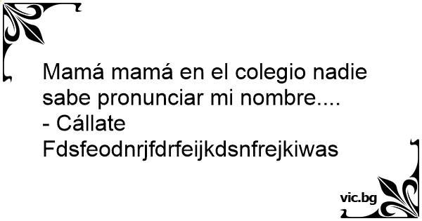 Mamá mamá en el colegio nadie sabe pronunciar mi nombre....<br />- Cállate Fdsfeodnrjfdrfeijkdsnfrejkiwas