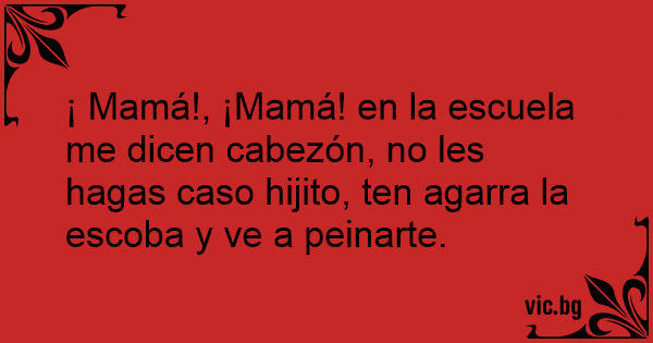 ¡ Mamá!, ¡Mamá! en la escuela me dicen cabezón, no les hagas caso hijito, ten agarra la escoba y ve a peinarte.