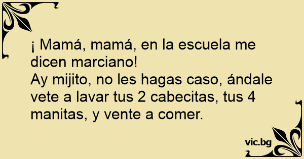 Ay mijito, no les hagas caso, ándale vete a lavar tus 2 cabecitas, tus 4 manitas, y vente a comer.