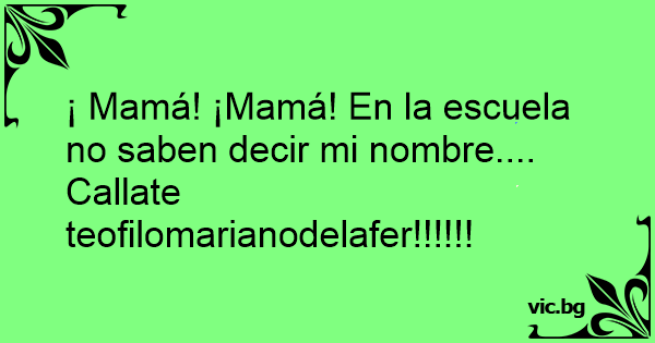 ¡ Mamá! ¡Mamá! En la escuela no saben decir mi nombre....