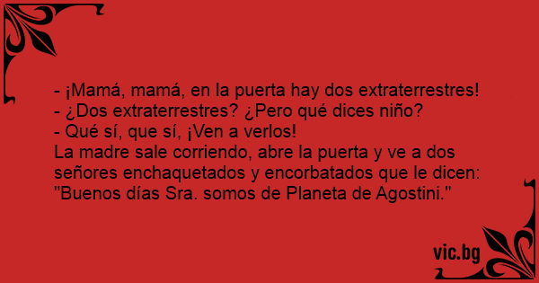 - ¡Mamá, mamá, en la puerta hay dos extraterrestres!