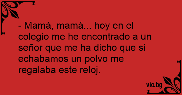 - Mamá, mamá... hoy en el colegio me he encontrado a un señor que me ha dicho que si echabamos un polvo me regalaba este reloj.