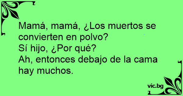 Perica:Mama jel istina da se ljudi pretvore u prašinu kad umru? Mama:Jeste sine! Perica:Neko je umro ispod mog kreveta.