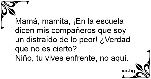Mamá, mamita, ¡En la escuela dicen mis compañeros que soy un distraído de lo peor! ¿Verdad que no es cierto?