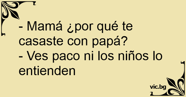 La inocencia de los niños. - Papá, ¿por qué te casaste con mamá? - Tú tampoco te lo explicas, ¿verdad hijo?