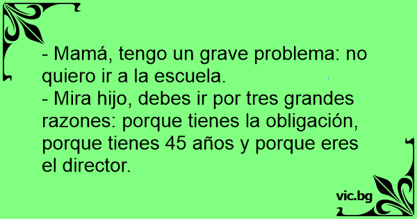 - Mamá, tengo un grave problema: no quiero ir a la escuela.