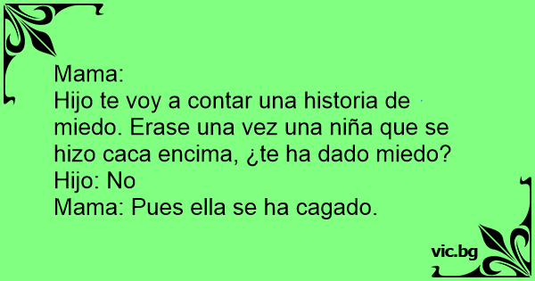 Hijo te voy a contar una historia de miedo. Erase una vez una niña que se hizo саса encima, ¿te ha dado miedo?