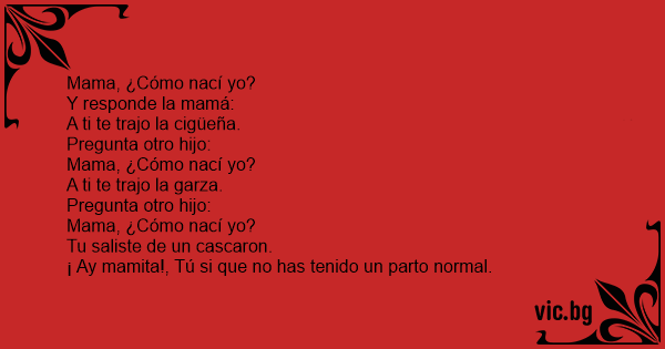 ¡ Ay mamita!, Tú si que no has tenido un parto normal.