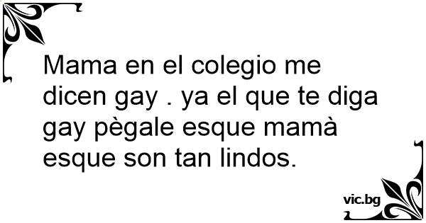 Mama en el colegio me dicen gаy . ya el que te diga gаy pègale esque mamà esque son tan lindos.
