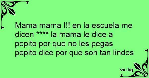 Mama mama !!! en la escuela me dicen **** la mama le dice a pepito por que no les pegas pepito dice por que son tan lindos