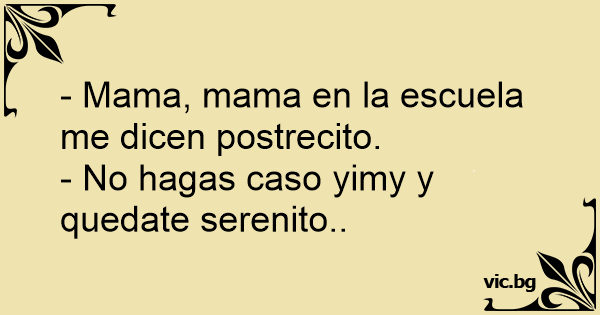 - Mama, mama en la escuela me dicen postrecito.- No hagas caso yimy y quedate serenito.. 6 0 0 Chistes de madres Chistes de la escuela