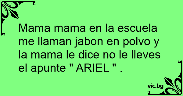 Mama mama en la escuela me llaman jabon en polvo y la mama le dice no le lleves el apunte " ARIEL " .
