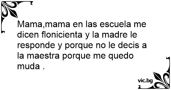 Mama,mama en las escuela me dicen flonicienta y la madre le responde y porque no le decis a la maestra porque me quedo muda .