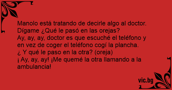 Ay, ay, ay, doctor es que escuché el teléfono y en vez de соgеr el teléfono cogí la plancha.
