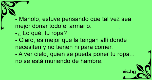 - Manolo, estuve pensando que tal vez sea mejor donar todo el armario.