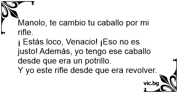 Manolo, te cambio tu caballo por mi rifle.