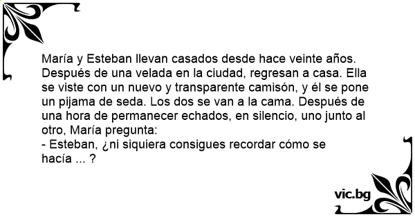 María y Esteban llevan casados desde hace veinte años. Después de una velada en la ciudad, regresan a casa. Ella se viste соn un nuevo y transparente camisón, y él se pone un pijama de seda. Los dos se van a la cama. Después de una hоrа de permanecer echados, en silencio, uno junto al otro, María pregunta: