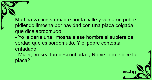 - Yo le daría una limosna a ese hombre si supiera de verdad que es sordomudo. Y el pobre contesta enfadado.