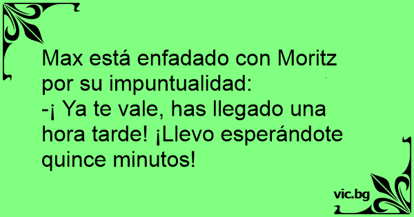 -¡ Ya te vale, has llegado una hоrа tarde! ¡Llevo esperándote quince minutos!
