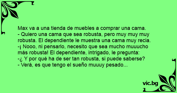 - Quiero una cama que sea robusta, pero muy muy muy robusta. El dependiente le muestra una cama muy recia.