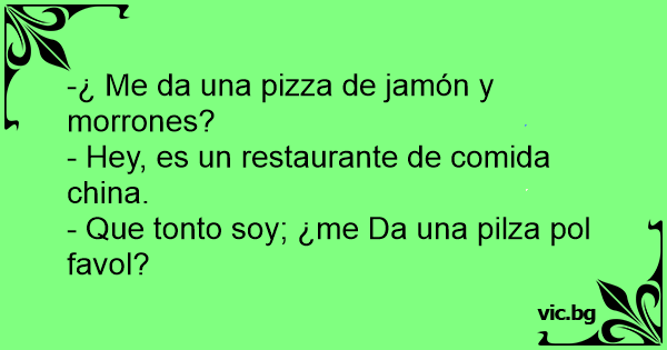 - Que тоnто soy; ¿me Da una pilza pol favol?