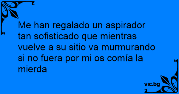 Me han regalado un aspirador tan sofisticado que mientras vuelve a su sitio va murmurando si no fuera por mi os comía la mierda