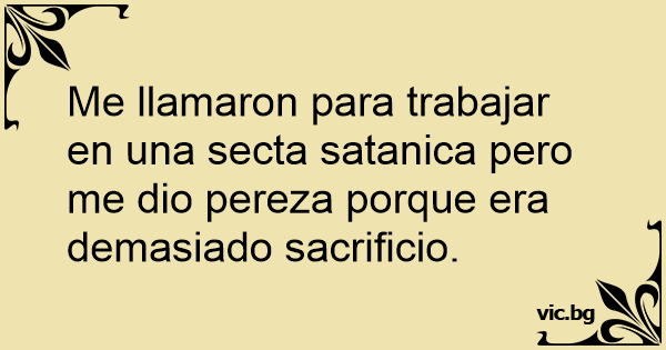 Me llamaron para trabajar en una secta satanica pero me dio pereza porque era demasiado sacrificio.