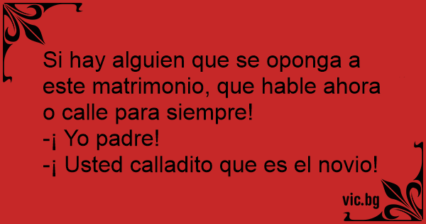 Si hay alguien que se oponga a este matrimonio, que hable ahora o calle para siempre!