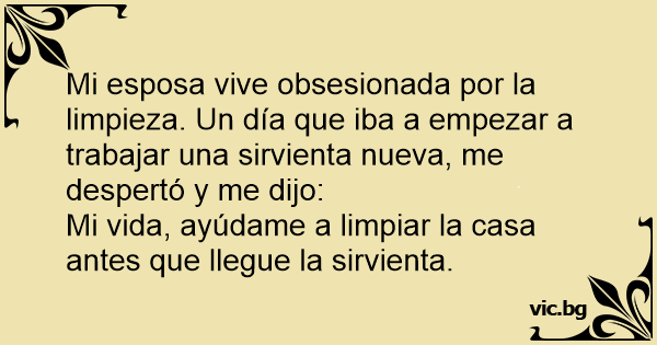 Mi esposa vive obsesionada por la limpieza. Un día que iba a empezar a trabajar una sirvienta nueva, me despertó y me dijo: