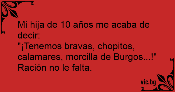 "¡Tenemos bravas, chopitos, calamares, morcilla de Burgos...!"