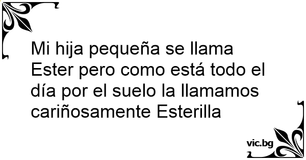 Mi hija pequeña se llama Ester pero como está todo el día por el suelo la llamamos cariñosamente Esterilla