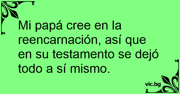 Mi papá cree en la reencarnación, así que en su testamento se dejó todo a sí mismo.