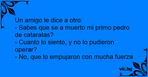- Sabes que se a muerto mi primo pedro de cataratas?