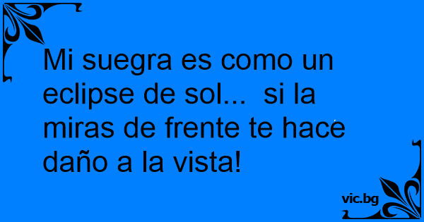 Mi suegra es como un eclipse de sol... si la miras de frente te hace daño a la vista!