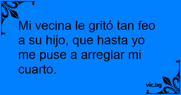 Mi vecina le gritó tan feo a su hijo, que hasta yo me puse a arreglar mi cuarto.
